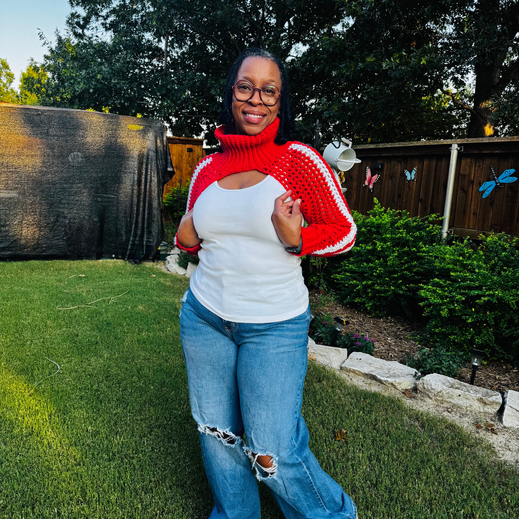It is designed for makers and fashion lovers alike. The Mock Turtleneck Shrug is available as a downloadable crochet pattern with step-by-step instructions. It is perfect for makers who love unique, fashion forward crochet patterns. It gives instructions for multiple sizes (S-XL). The pattern includes detailed instructions and clear stitch guidance for advanced beginners. If you’re ready to make your own download the pattern instantly, and start crocheting today!